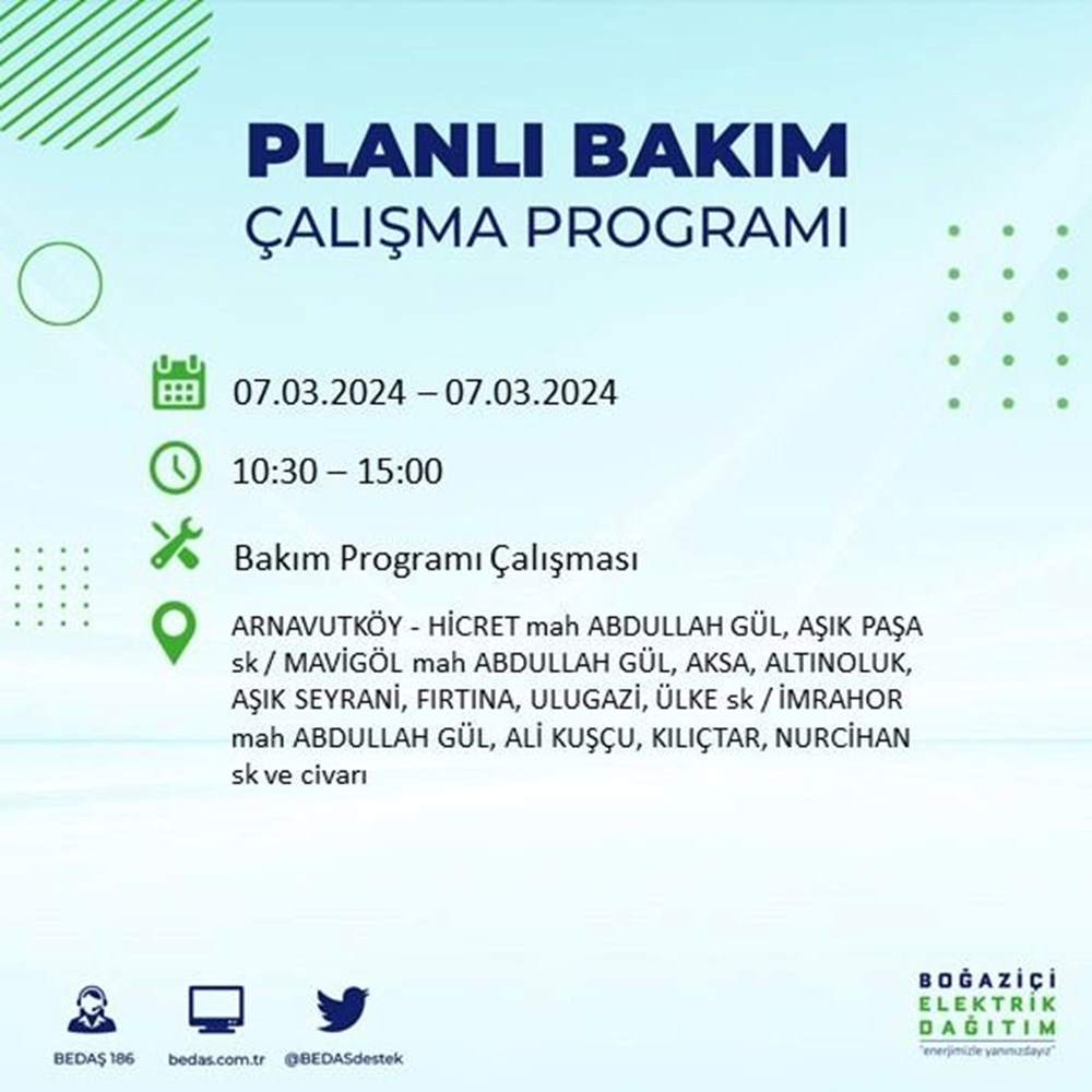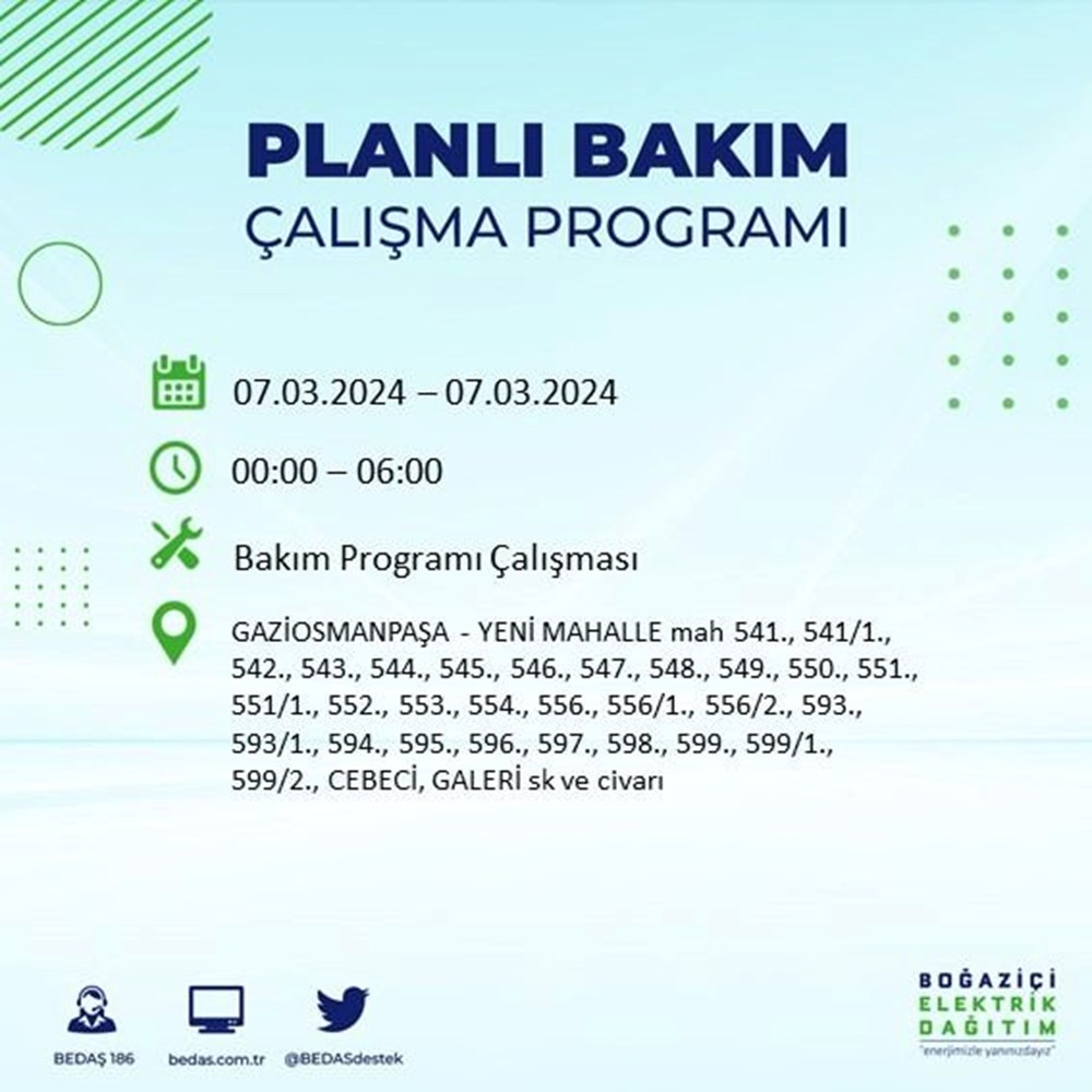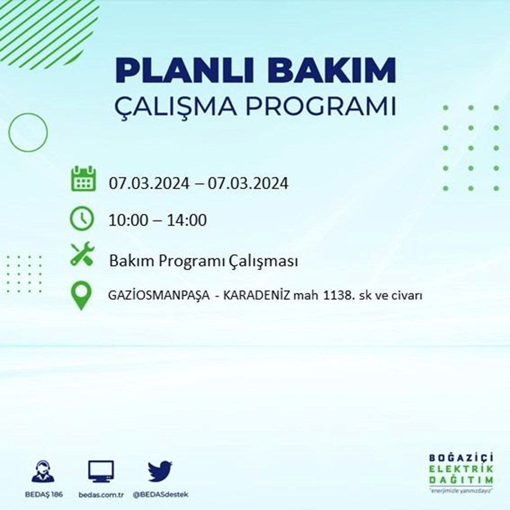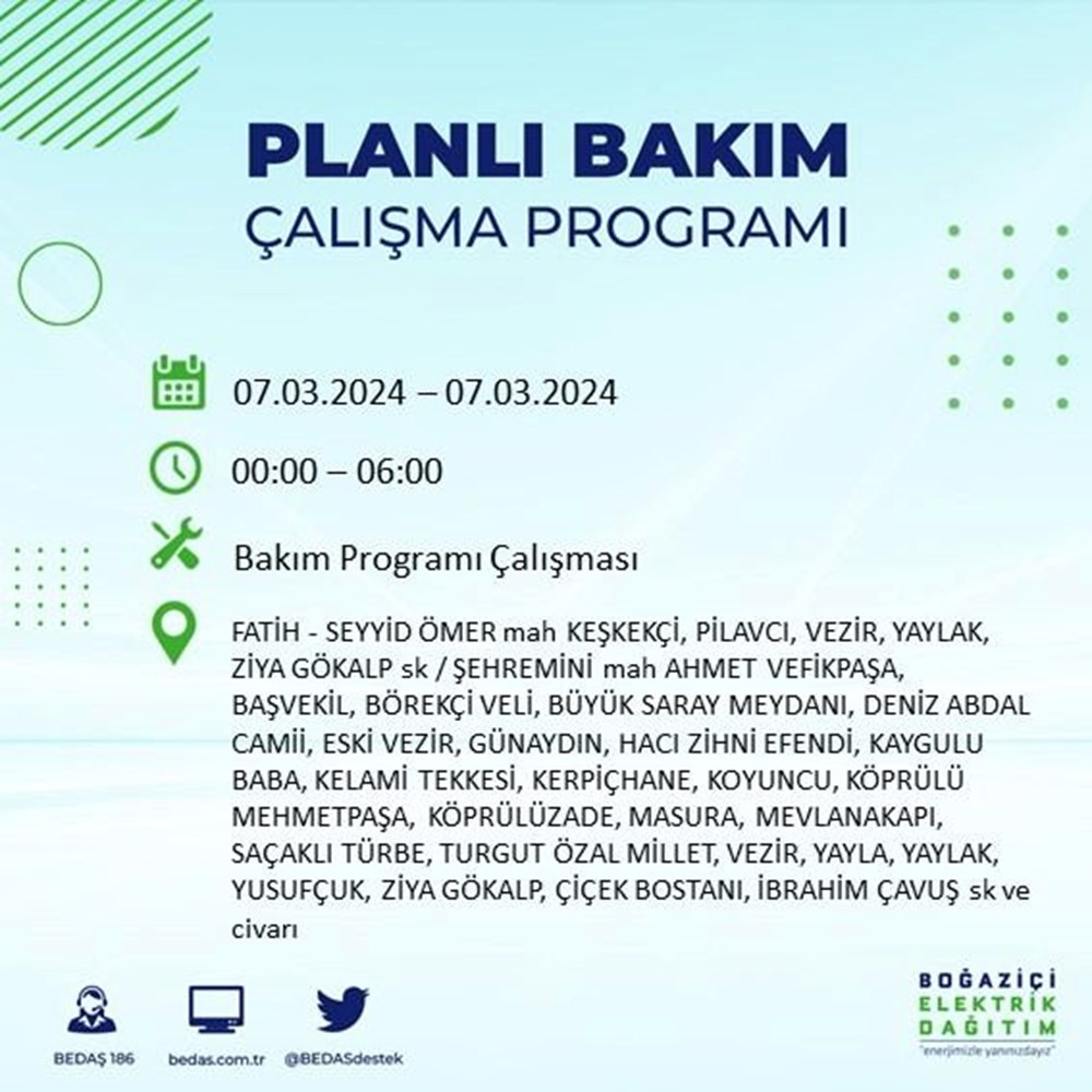 7 MART BEDAŞ ELEKTRİK KESİNTİSİ