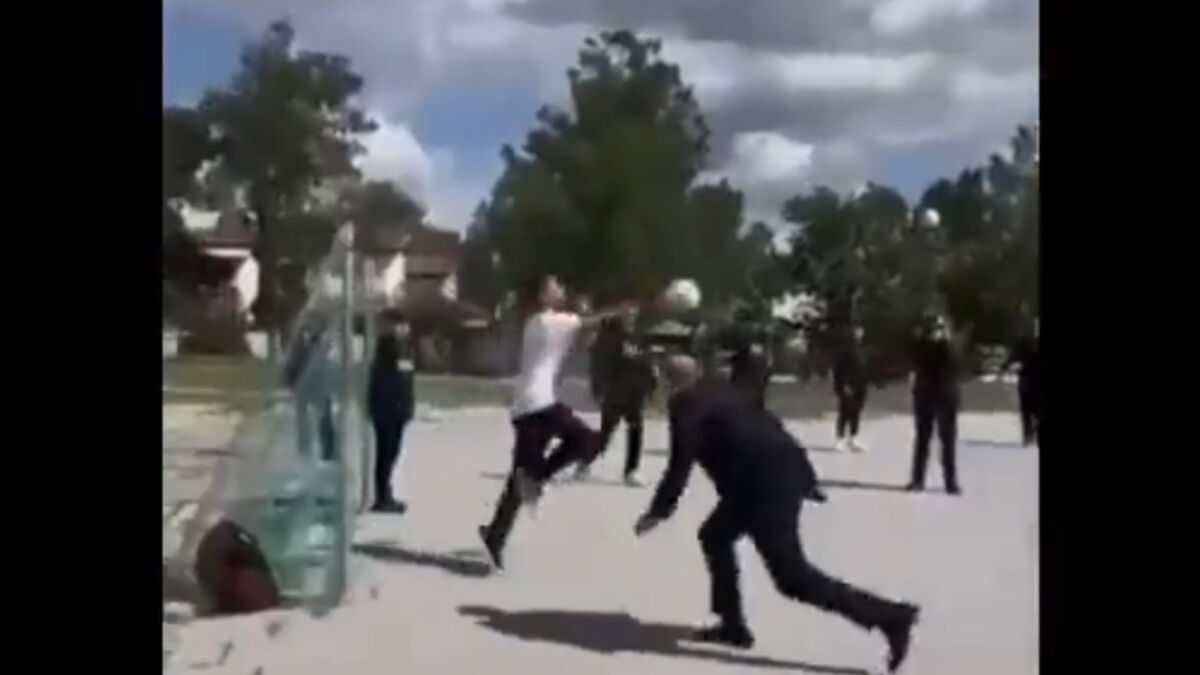 KKTC Cumhurbaşkanı Ersin Tatar, topa kafa atarken yere düştü
