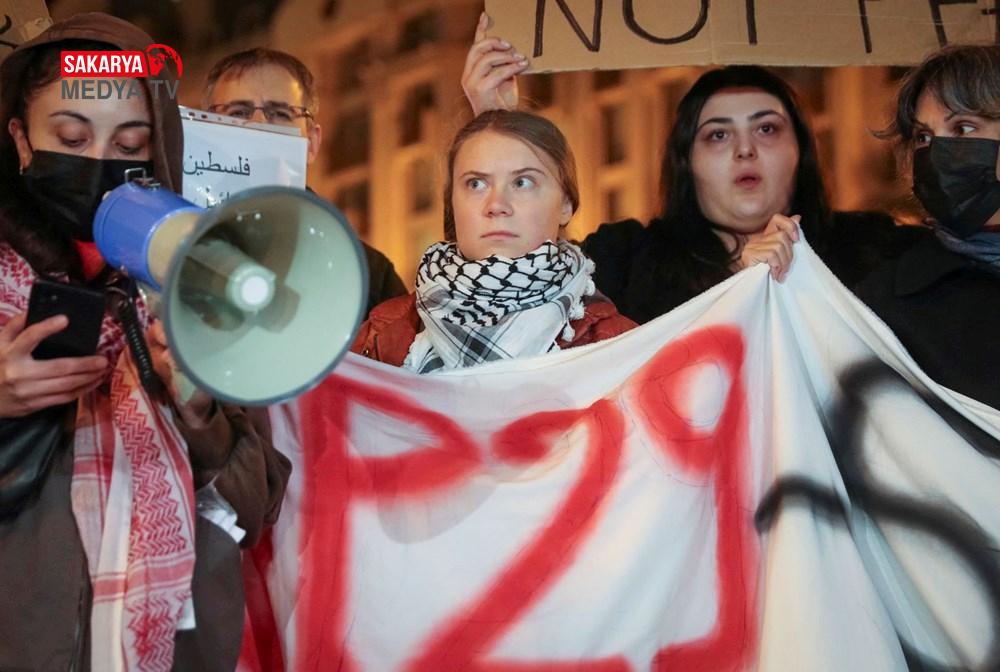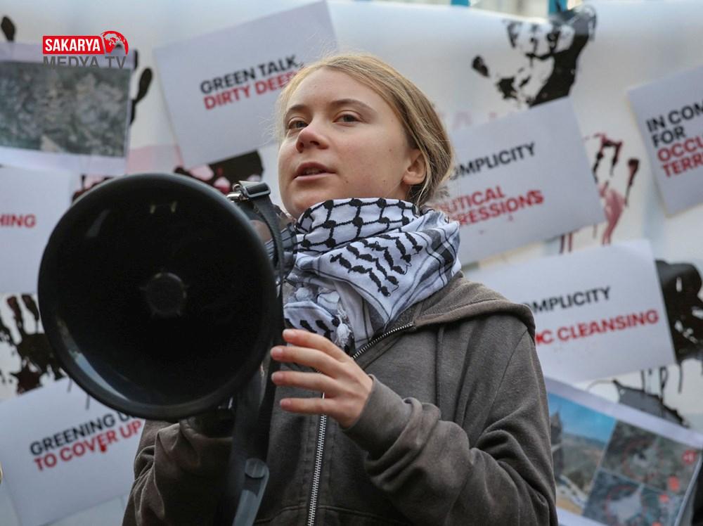 Thunberg, iklim değişikliğine karşı katıldığı aksiyonların yanı sıra Filistin’e dayanağı ile de biliniyor.