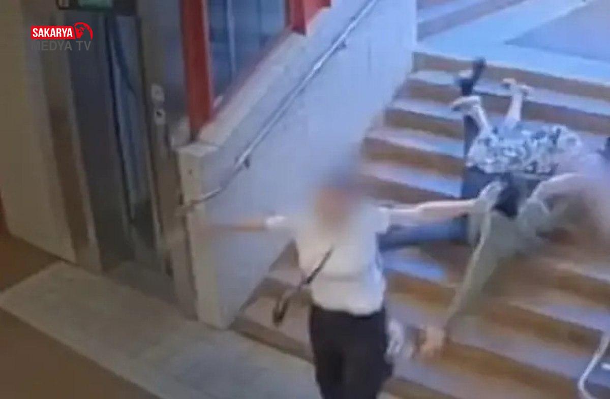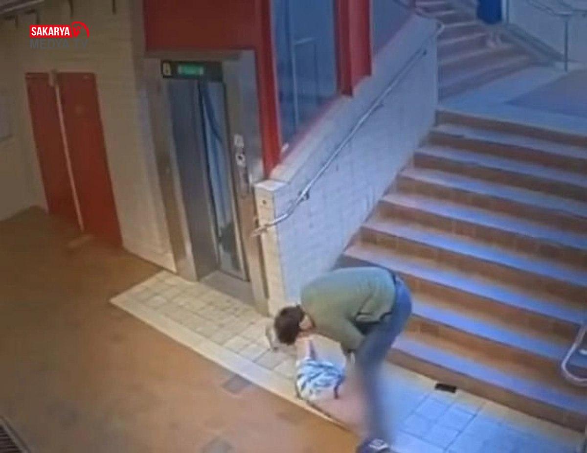 Yaşlı bayanın kolyelerini çalmaya çalışan şahıs, bir de 91 yaşında bayanı merdivenlerden itti.