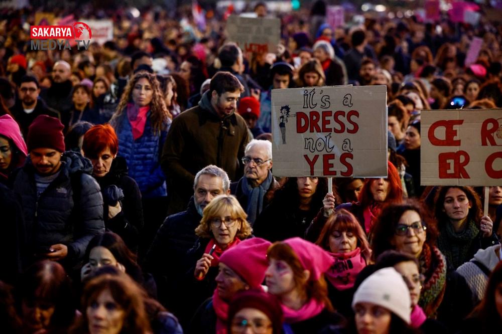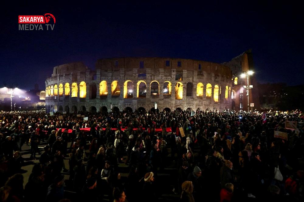 Kolezyum önünden geçerek Vittorio Emanuele Meydanı’na kadar yürüyen on binlerce kişi, bayanlara yönelik şiddet ve ataerkil şiddete karşı reaksiyon gösterdi.