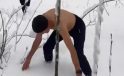 Bursa’da iki genç kar banyosu yaptı
