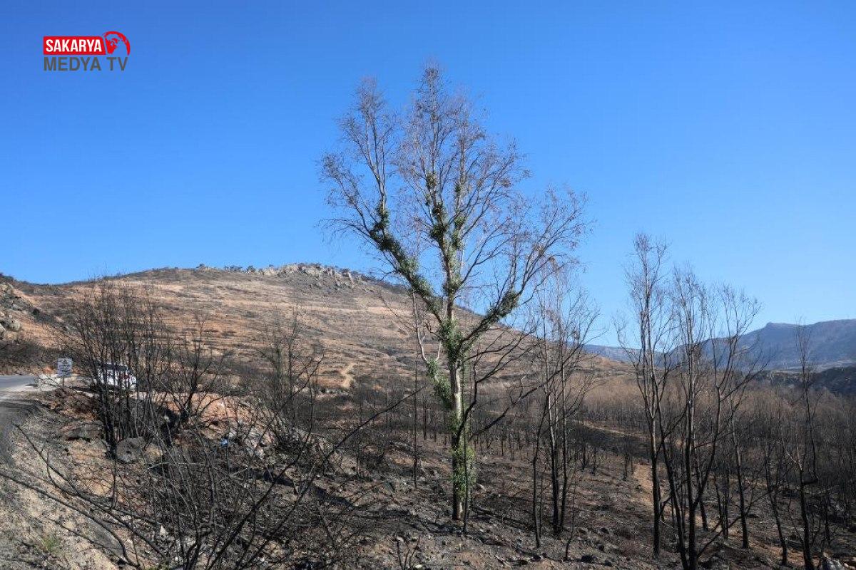 Bölgede yanan bir ağacın yarısının yandığı, yarısının ise yeşermesi dikkat çekti.