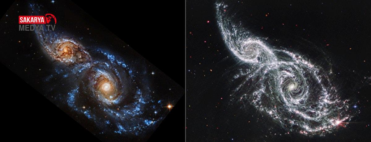 NASA Jet İtki Laboratuvarı tarafından yapılan açıklamaya nazaran, bilim insanları, IC 2163 ve NGC 2207 isimli sarmal galaksilerin çarpıcı imajlarını elde etmek için James Webb Uzay Teleskobu’nun Orta Kızılötesi Aygıtı (MIRI) ile Hubble Uzay Teleskobu’nun morötesi ve görünür ışık kameralarından gelen bilgileri birleştirdi.