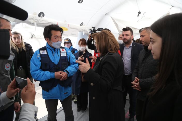 14 hekimin yer aldığı Japonya ekibinde, ameliyat ve yatan hasta hizmeti de veriliyor. Aynı zamanda Türk doktorlar ile hemşirelerin de yer aldığı hastanede depremzede ve diğer kişilere tüm sağlık hizmetleri sağlanıyor. Çalışmaları incelemek adına sahra hastanesini ziyaret eden Gaziantep Büyükşehir Belediye Başkanı Fatma Şahin, burada Japonya’dan gelen heyetin başkanı Başhekim Takeshi İshihara’dan hastane hakkında bilgiler aldı.