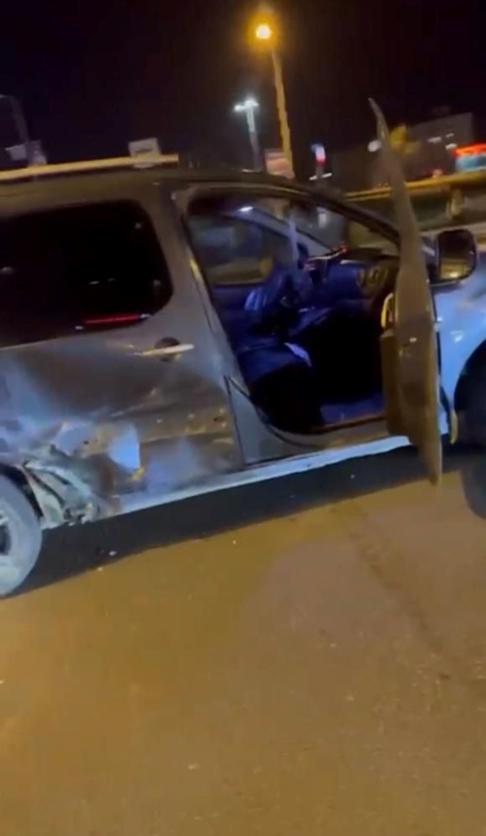 Dakikalarca bu halde ilerleyen şoför, iki araca çarparak kaza yaptı.