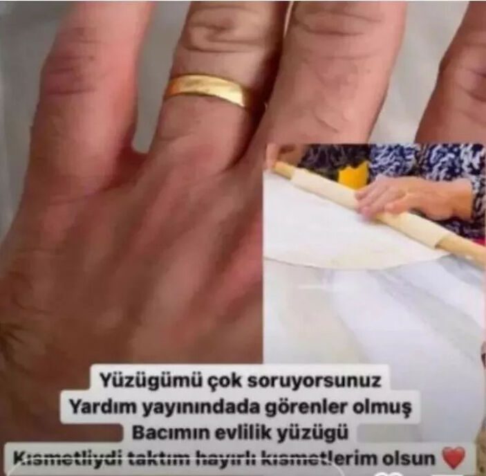 Yüzüklü parmağının fotoğrafını koyan ünlü sunucu şu açıklamayı yaptı: “Bacımın evlilik yüzüğü”