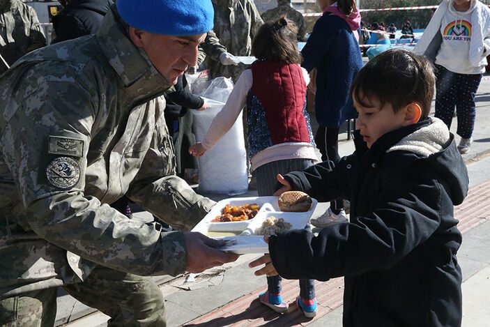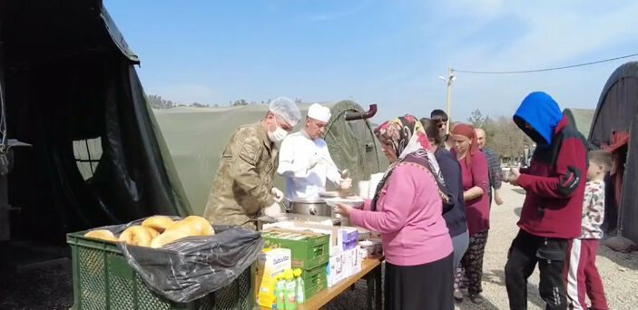 Askerlerin, deprem bölgelerinde sıcak çorba dağıtımına devam ettiği aktarıldı.