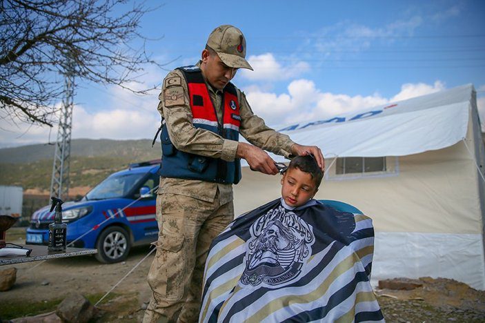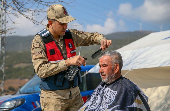 İl Jandarma Komutanlığı, Nurdağı ve İslahiye’de vatandaşları tıraş etmek için bir ekip görevlendirdi. Bu kapsamda kolları sıvayan jandarma personeli, kırsal mahallelere giderek hem depremzedelerin gıda ve çadır ihtiyaçlarını gideriyor hem de saç ve sakalını tıraş ediyor.