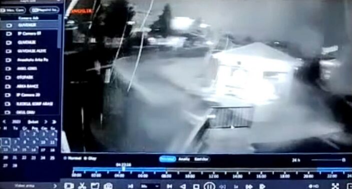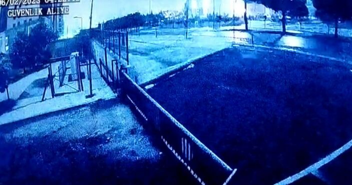 Onikişubat ilçesinde bulunan özel okulun güvenlik kameralarına yansıyan görüntülerde şiddetli depremin başlaması ile birlikte gökyüzünde ortaya çıkan ışık hüzmesi ve yerde meydana gelen sallantı yaşanan afeti gözler önüne serdi.