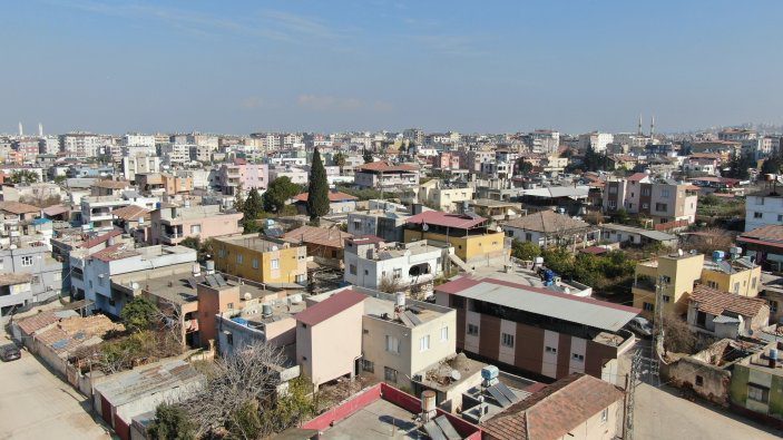 Suriye sınırının 0 noktasında bulunan Reyhanlı’da ise deprem sonrası bazı evler yıkılırken çoğu evde hasar oluştuğu, havadan böyle görüntülendi.