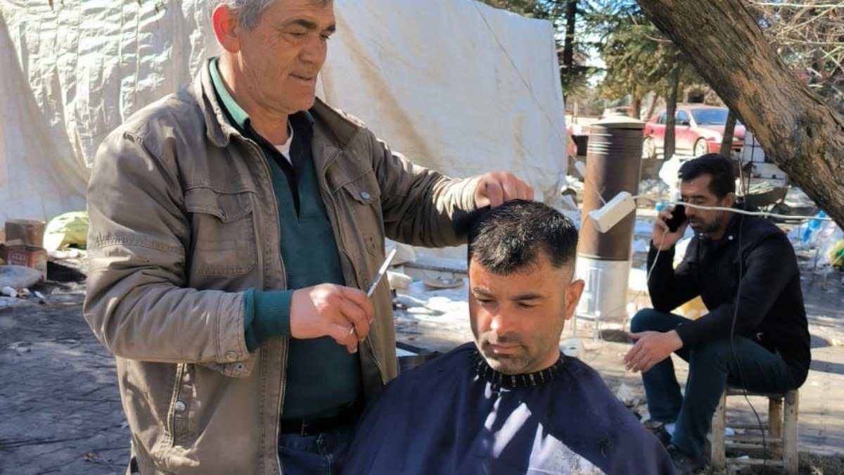 Malatya’da dükkanı yıkılan berber, depremzedeleri ücretsiz tıraş ediyor