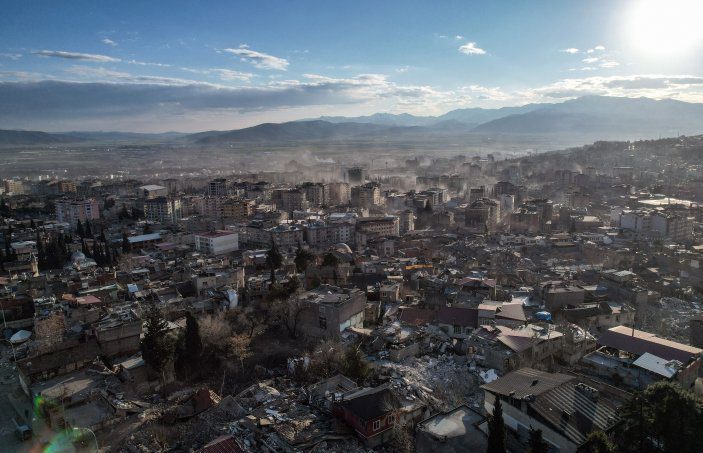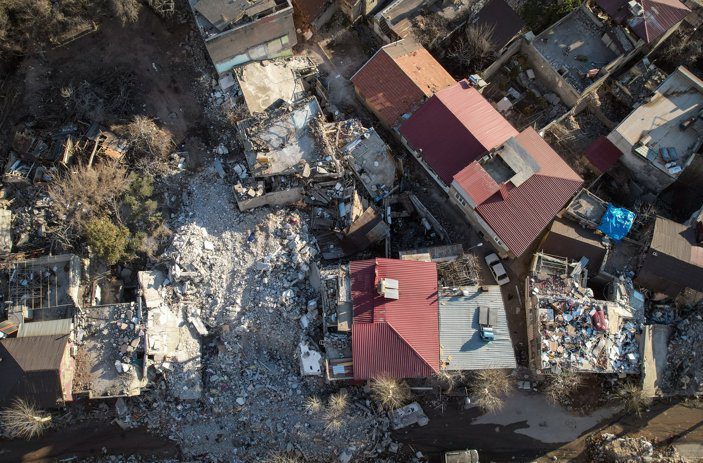 Enkaz kaldırma çalışmaları devam ederken, şehrin sessizliğe bürünen ara sokakları dron ile görüntülendi.