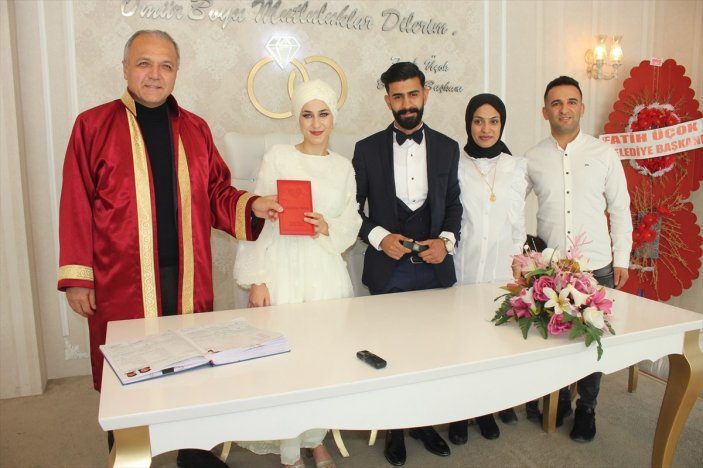 Kahramanmaraş’ta yaşayan 19 yaşındaki Fatma Demir ile 24 yaşındaki Ali Kara, evlenmek için gün sayarak şehirde iki büyük deprem yaşandı. Depremlerin ardından Amasya’nın Suluova ilçesindeki yakınlarının yanına yerleşen Ali Kara ve Fatma Demir, Suluova Belediyesi’ne nikah başvurusunda bulundu. Başvurunun olumlu sonuçlanmasının ardından çiftin nikahı, Belediye Başkanı Fatih Üçok tarafından kıyıldı.
