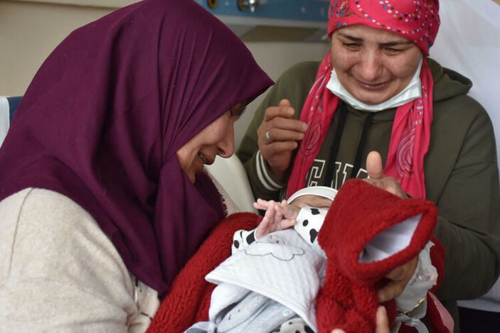 Hem sevinçli hem de hüzünlüyüm. Depremden beri çocuğumu görmüyordum. En son 10 dakika önce mamasını verip yatırmıştım.