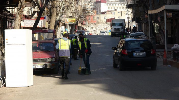 Diğer yandan da belediye personeli tarafından enkaz çalışmalarının yanı sıra sokaklar da temizleniyor.