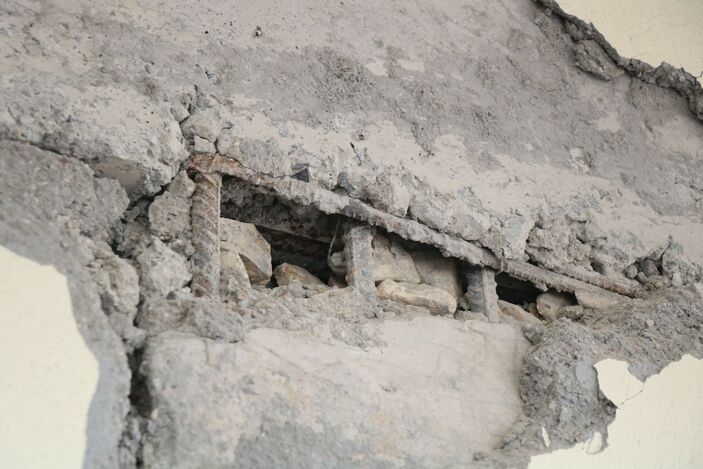 Buraya hasar tespiti için geldiler ve binamıza az hasarlı raporu verdiler. Bizim burada şikayetimiz, kolonlarımızın üzerine hep taş doldurmuşlar.