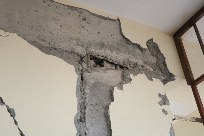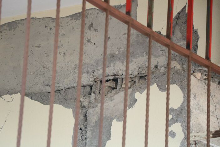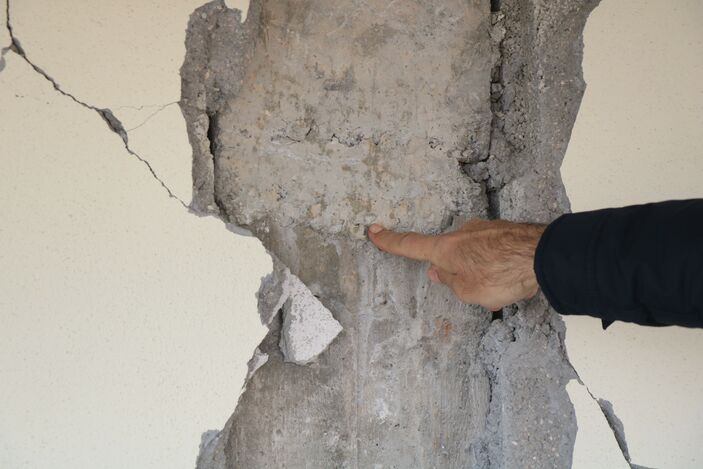 Çünkü bu binaya da az hasarlı vermişler. Bu nasıl oluyor da az hasarlı veriliyor? Kolonlar hep çatlak, üzerinde de taş dolu.
