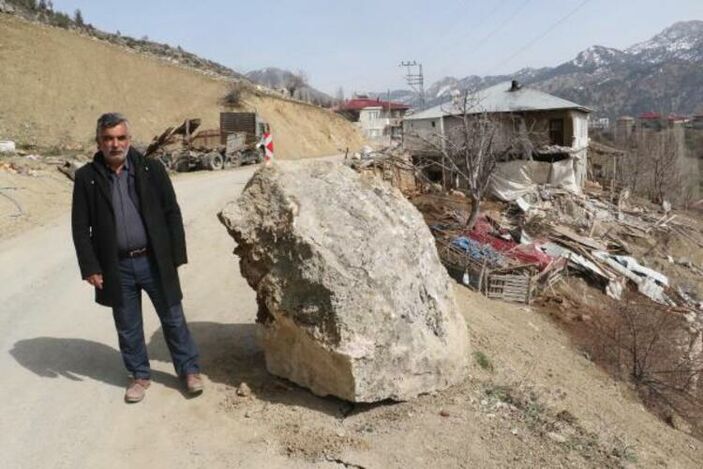 Bu arada Kahramanmaraş Valiliği, yeniden kaya parçası düşebileceği ve heyecan tehlikesi nedeniyle evlere girilmemesi konusunda mahalle halkına uyarıda bulundu.