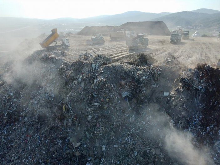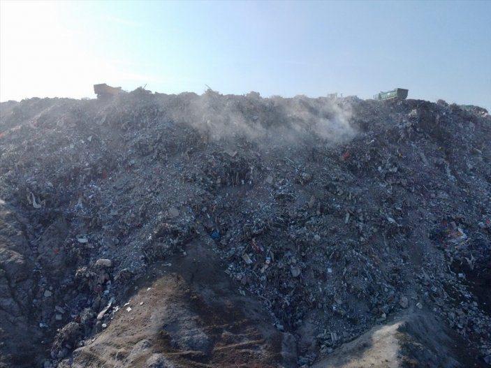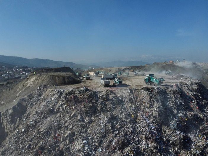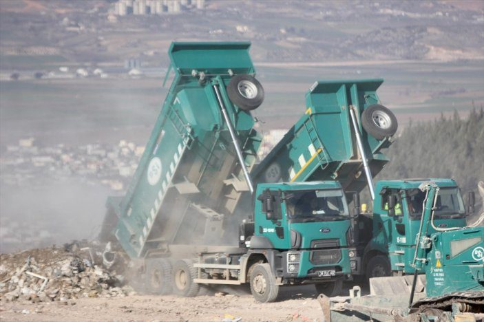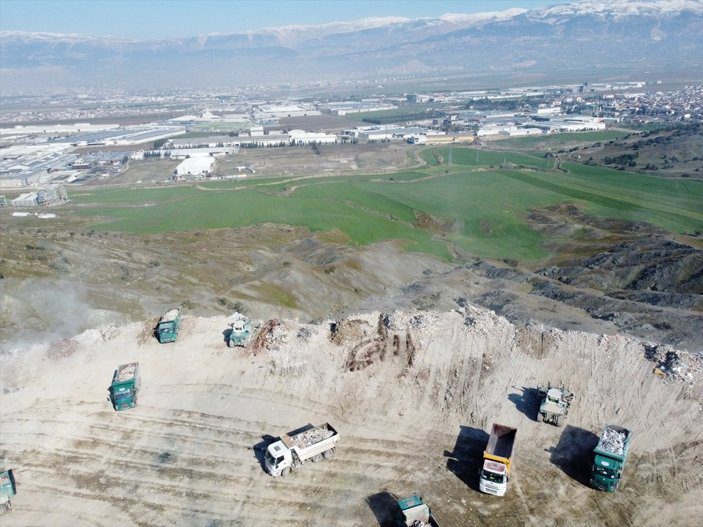 Kentte moloz döküm alanı olarak belirlenen Dulkadiroğlu ilçesine bağlı Karacasu mevkisindeki alan getirilen molozlar iş makineleriyle bu bölgeye seriliyor.