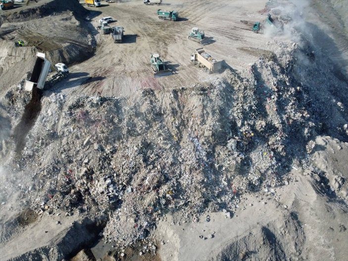 Molozların oluşturduğu enkaz birikintisi ise dağ gibi yükseliyor.