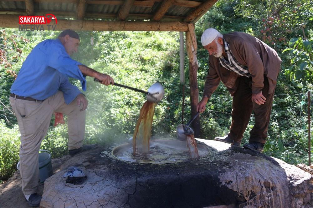 Yaptıkları pekmezin şifa kaynağı olduğunu ve tercih edildiğini belirten Özer, “Yüzyıllardır bizim yaptığımız üzüm pekmezi, dedelerimizden babalarımızdan kaldı. Önce bağdan üzümlerimizi topluyoruz. Daha sonra sıkma kazanlarımıza koyuyoruz.