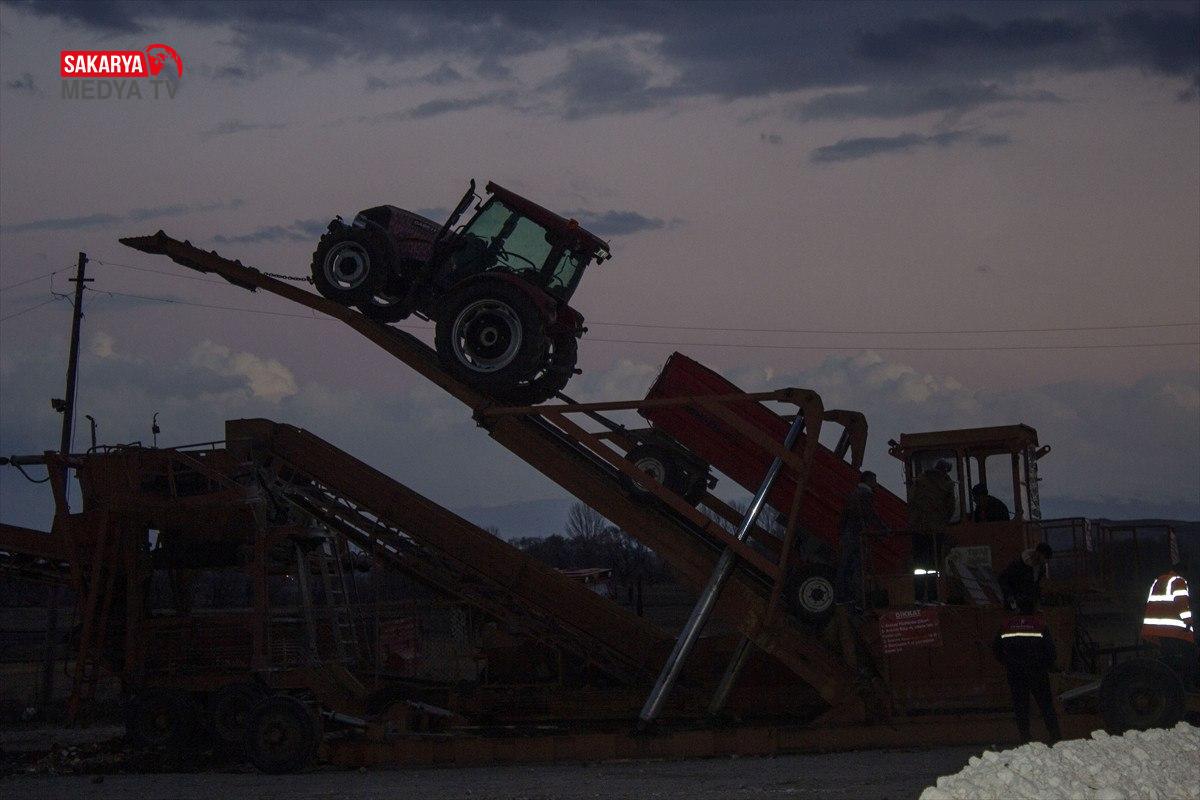 Pancarlar buradan kamyonlarla Türkşeker Kars Şeker Fabrikası’na taşınıyor.