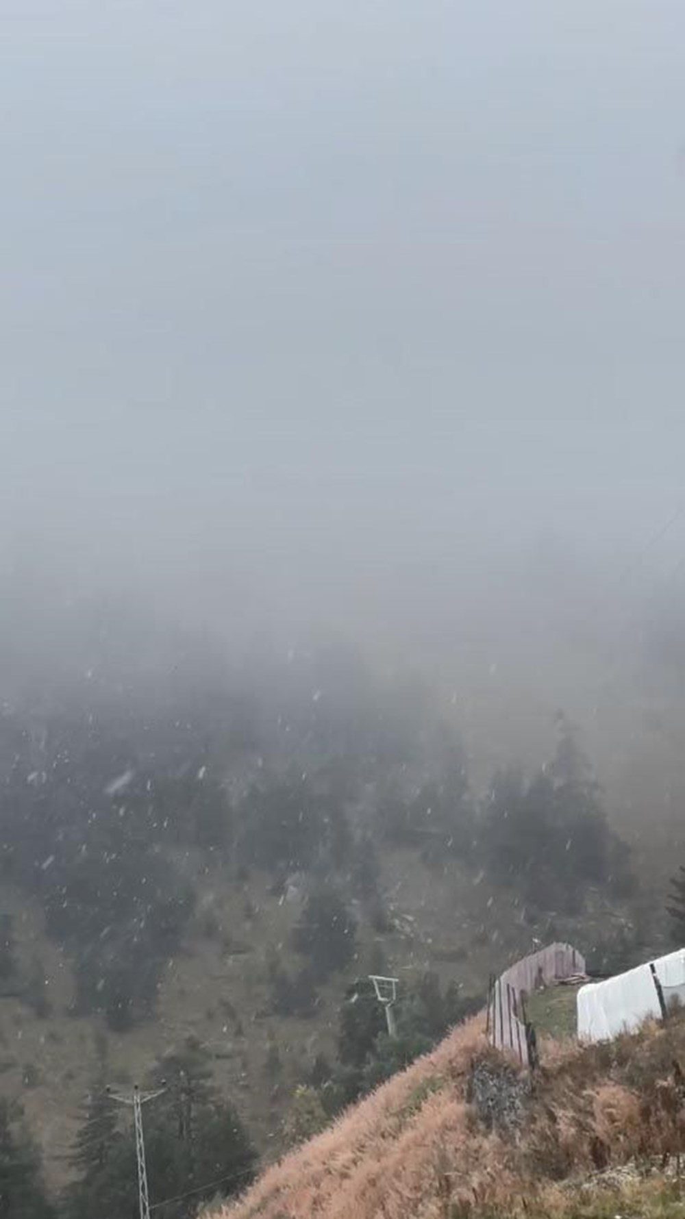 Bolu’da sabah saatlerinden itibaren aralıklarla tesirli olan yağmur, yüksek kısımlarda yerini kara bıraktı. Köroğlu Dağları’nın tepesindeki 2 bin 200 rakımlı kayak merkezi Kartalkaya’ya mevsimin birinci karı düştü.