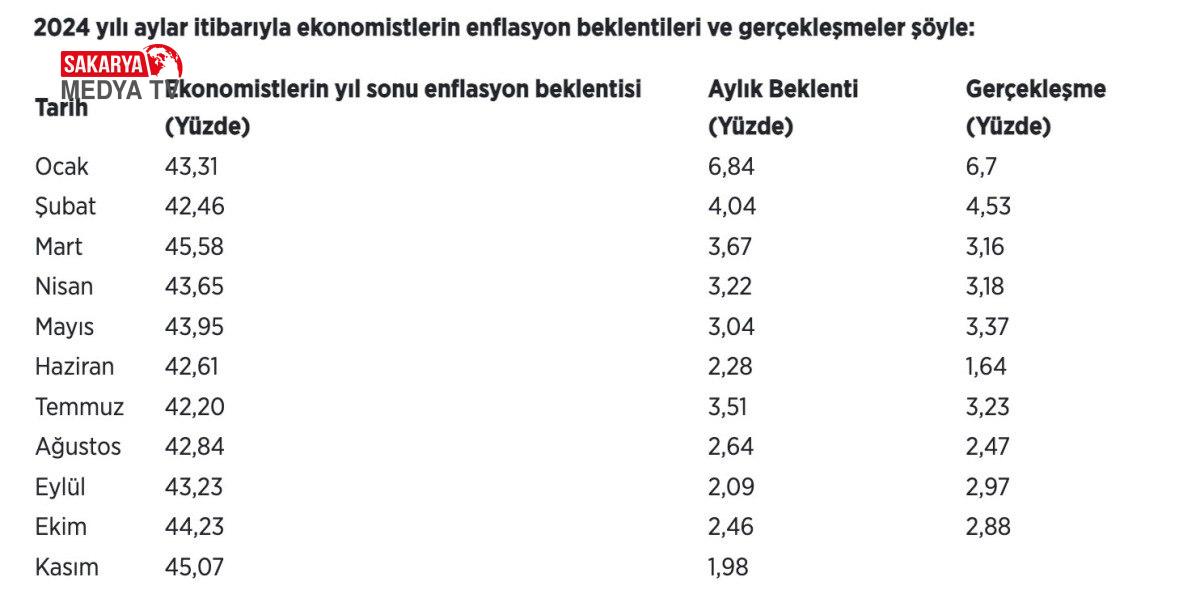 Öte yandan, ekonomistlerin 2024 sonu enflasyon beklentisi kasımda yüzde 45,07 oldu.