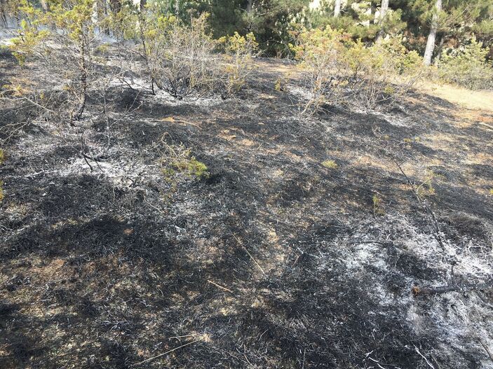 Yangının giderek büyümesiyle yaklaşık 10 dönümlük arazi zarar gördü.