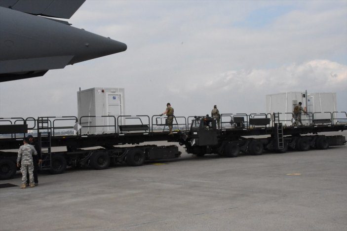 Haftanın ilk üç gününde toplam 9 askeri uçaktaki mobil tuvalet ve banyo gibi insani yardım malzemeleri, İncirlik Hava Üssü’nde tırlara yüklenerek depremden etkilenen illere kara yoluyla gönderildi.