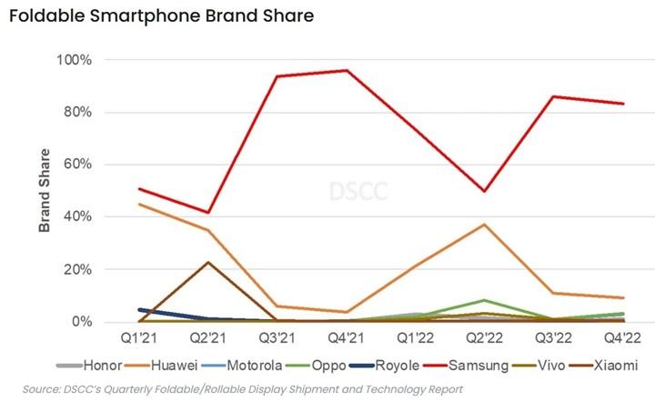 DSCC tarafından yayınlanan yakın tarihli bir raporda 2022 yılının son çeyreği mercek altına alındı. Rapora göre katlanabilir akıllı telefon sevkiyatları yılın son çeyreğinde bir önceki döneme göre yüzde 48 oranında düştü. Bir önceki yılın aynı dönemine göre ise düşüş yüzde 26 seviyesinde. Elde edilen bilgilere göre Ekim-Aralık dönemi boyunca 3,1 milyon adet katlanabilir telefon sevkiyatı gerçekleşti.