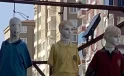 Okul kıyafeti giydirdiği mankenleri boyunlarına ip bağlayıp sallandırdı