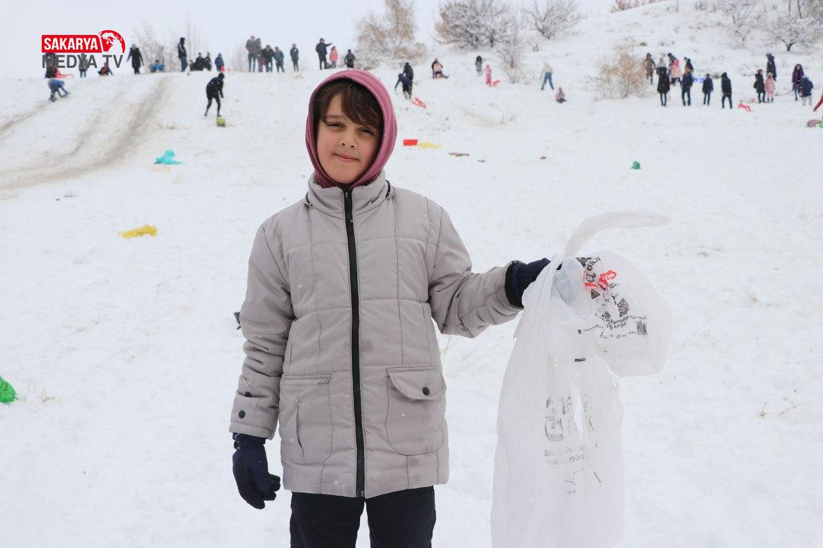 Poşet ile kaymaya gelen Fatih Emih Güler , “6’ncı sınıf öğrencisiyim.