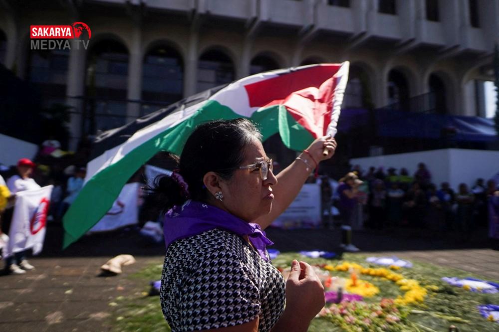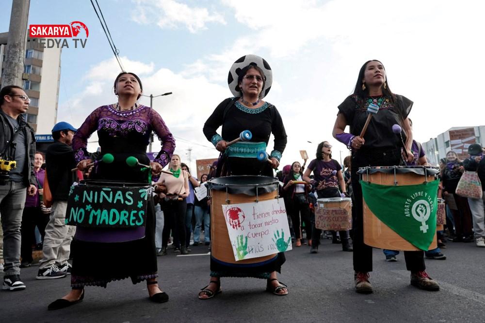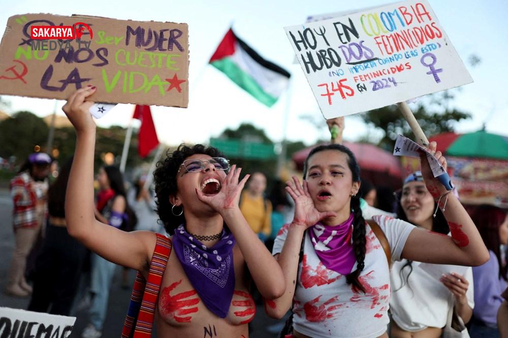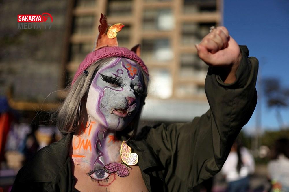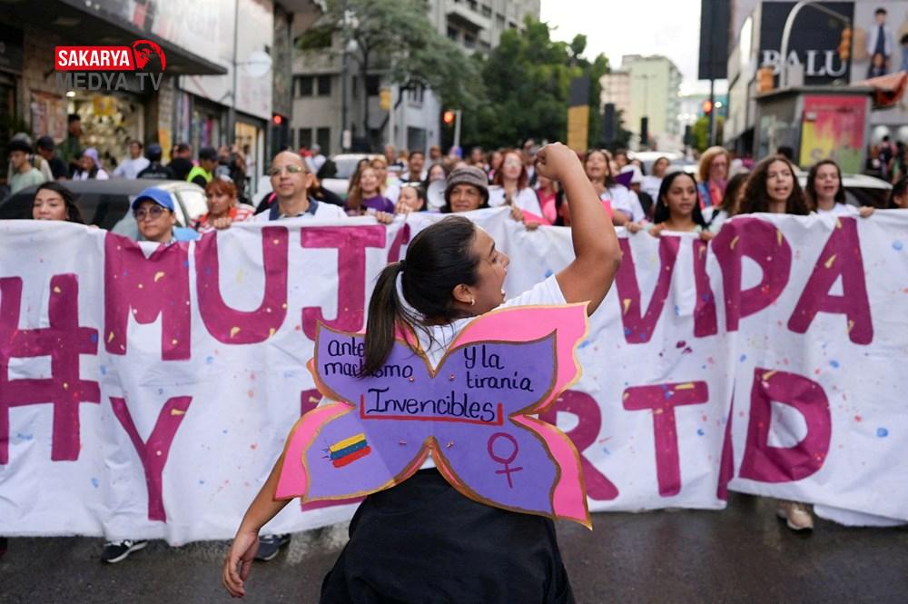Venezuela’nın Caracas kentinde de kalabalık kadın grupları sokaklarda sloganlar atarak ve ellerinde pankartlarla yürüdü.