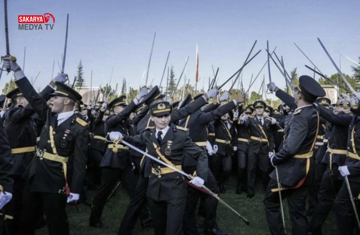 Milli Savunma Üniversitesi Kara Harp Okulu’nda, 30 Ağustos’ta düzenlenen diploma merasiminde, resmi kısım tamamlandıktan sonra yeni mezun teğmenlerin bir kısmı kılıç çekerek yemin etti.
