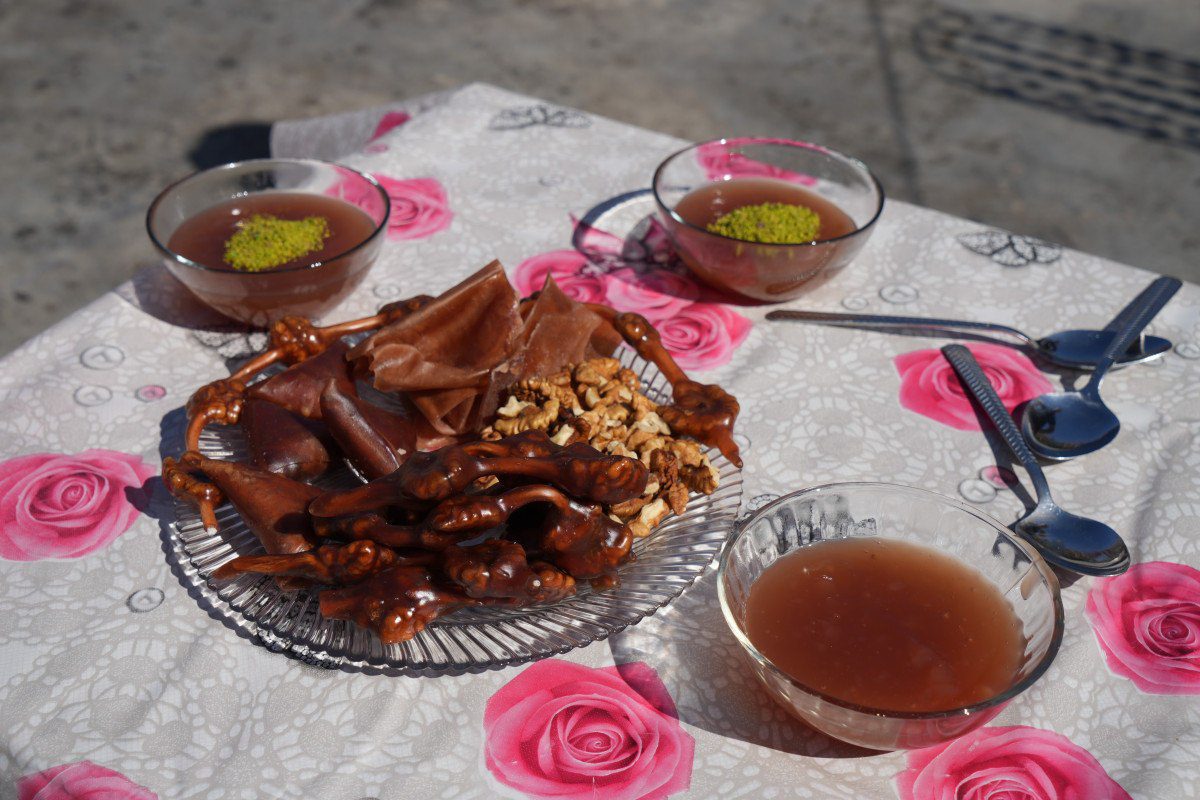 Eylül ayında hasadı başlayan üzümlerin sıkılmasıyla birlikte elde edilen üzüm suyu, kurulan büyük kazanlarda saatlerce odun ateşinde kaynatılarak pekmez haline getiriliyor. Ardından üzüm suyuna ipe serilmiş ceviz, fıstık ve badem batırılıp güneşte kurutularak sucuk yapılıyor.