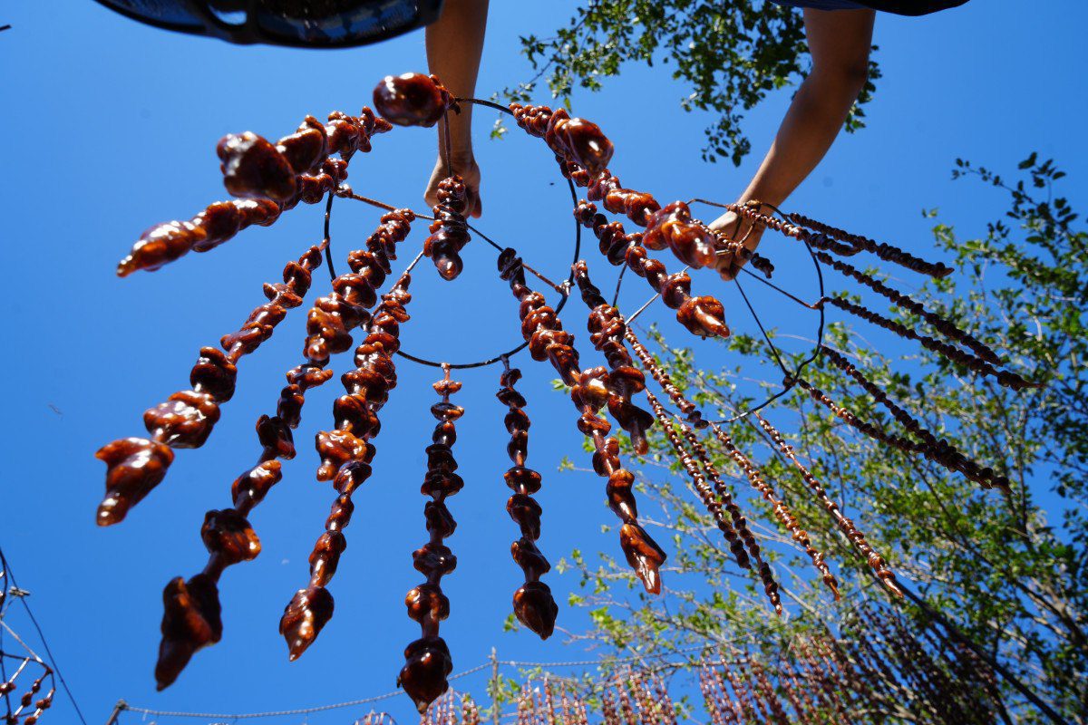 İplere tek tek nakış gibi işlediğimiz badem, fıstık ve cevizi hapse ile birleştirerek güneş altında 3 ile 4 gün bekleterek kurumasını bekliyoruz.” diye konuştu. Kaynak: İhlas Haber Ajansı (İHA)