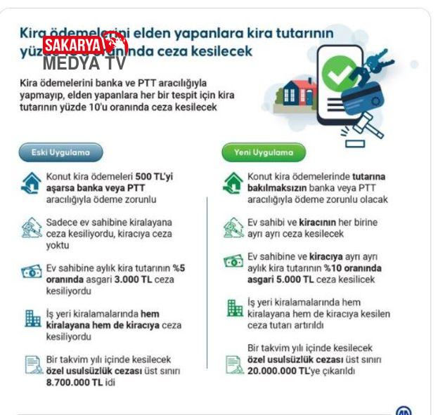 Eski uygulamada iş yeri kira ödemeleri fiyatına bakılmadan, konut kira ödemelerinde 500 lirayı aşması durumunda bankalar yahut PTT aracılığıyla ödenmesi mecburiydi. Bildirimle konut kiralarında kelam konusu hudut kaldırıldı. Tüm ödemeler banka yahut PTT aracılığıyla gerçekleştirilecek.