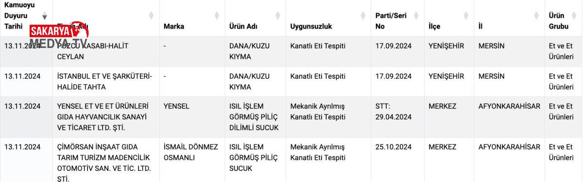 Taklit yahut Tağşiş Yapılan Besinler listesine Mersin’in Yenişehir ve Afyonkarahisar’ın merkez ilçelerinde bulunan 4 firma daha eklendi.