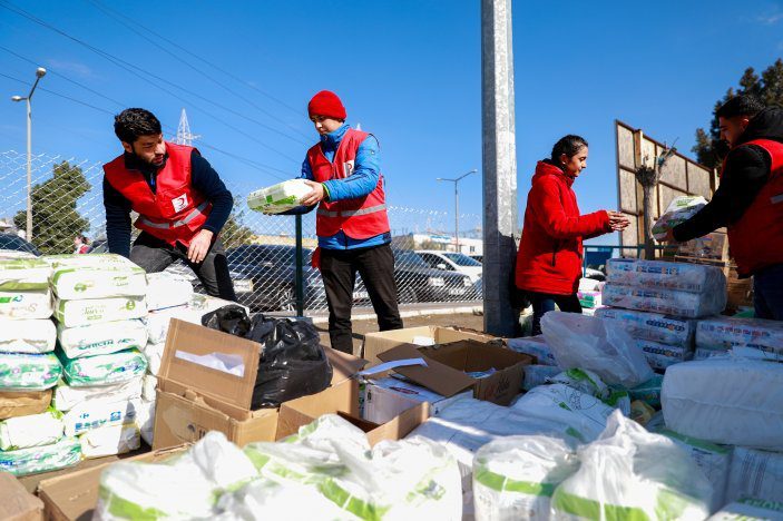 Kızılay, afet bölgesinde bulunan aşevleri ve mobil beslenme araçlarından günde 3 öğün olmak üzere afetin ilk gününden bugüne kadar toplamda 54 milyon 974 bin 477 kişilik beslenme desteği sağladı. Binlerce personel ve gönüllüsü ile afet bölgesinde bine yakın noktada hizmet veren Kızılay, depremin 16. günü itibariyle kendisine bildirilen ve yıkıntı nedeniyle ihtiyaç sahibi olduğu belirtilen bütün bölgelere yardım malzemesi ulaştırdı.