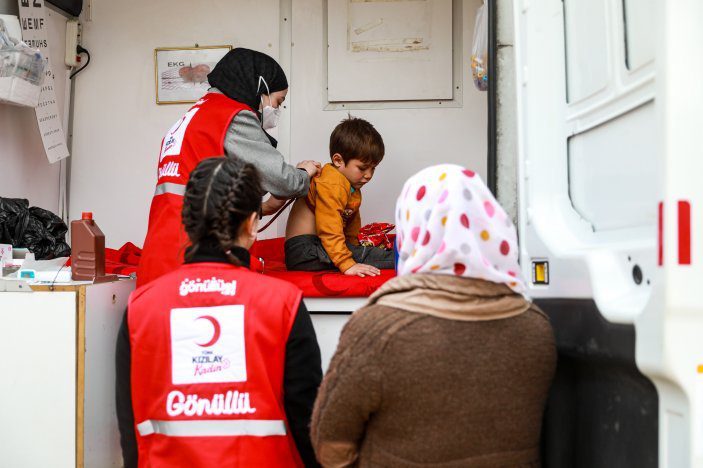 Kızılay, afetin hemen ardından kan temini ile başlattığı sağlık desteğini bölgeye gönderdiği mobil sağlık araçları ile sürdürüyor.