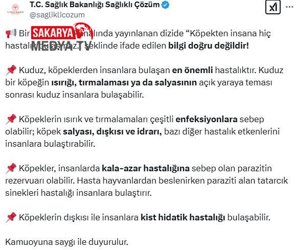Sahnenin ardından Sağlık Bakanlığı, Sağlıklı Çözüm hesabından bir ikaz metni yayınladı. Açıklamada, “Köpekten beşere hastalık bulaşmaz” biçimindeki bilginin yanlışsız olmadığı belirtildi. Açıklamada şu tabirlere yer verildi: “Bir televizyon kanalında yayınlanan dizide “Köpekten beşere hiç hastalık bulaşmaz.” halinde tabir edilen bilgi gerçek değildir!