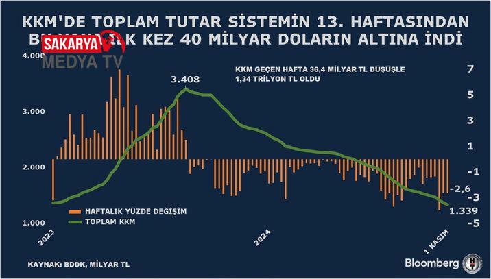 Dolar cinsinden bakıldığında ise büyüklük 40 milyar doların altına geriledi. Böylece 2021 Aralık ayında başlayan sistemin 13. haftasından bu yana birinci defa 40 milyar doların altında bir büyüklük gerçekleşti.