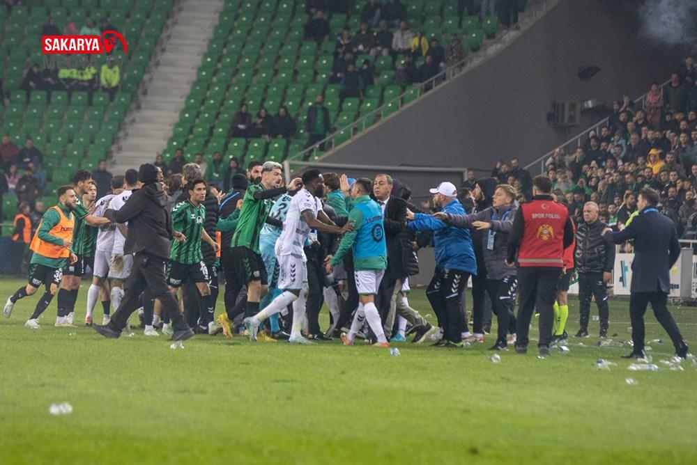 Bununla yetinmeyen kendilerine insan demeyi kendimize zül addettiğimiz birkaç kendini bilmez, karşılaşma sonunda kulüp yönetim kurulu ve konuklarımıza de protokol tribünü önünde fiziki ve kelamlı tacizlerde bulunmuştur” tabirleri kullanıldı. Fiziki taarruzların Sakaryasporlu yöneticiler tarafından yapıldığının söz edildiği açıklama şu tabirlerle tamamlandı: “Maalesef, fiziki saldırıyı başlatan bireylerin birden fazla rakip takım yönetim kurulu üyeleri ve görevlileridir.