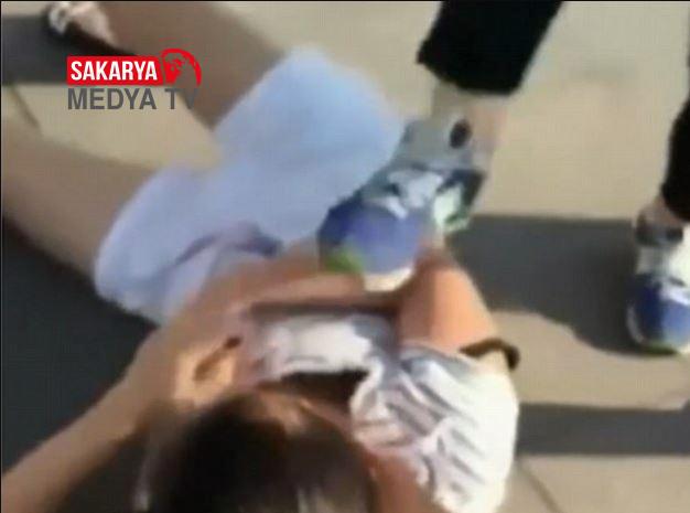 Mağdur kadın, sadece göğsünü örtmeye ve kendini sürekli gelen darbelerden korumaya çalıştı. Üç kişiye karşı savunmasız kalan genç kadın, bir ara saçlarından tutularak sert zemin üzerinde sürüklendi.