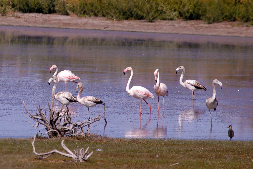 Soluk renkleri ile ayırt edilen yavru flamingoların, erişkinler nezaretinde sazlıklardaki toplu uçuşları ve beslenmeleri dikkati çekti.