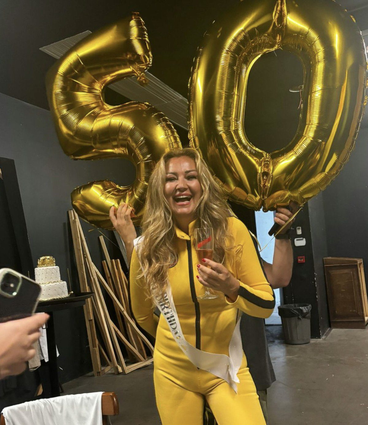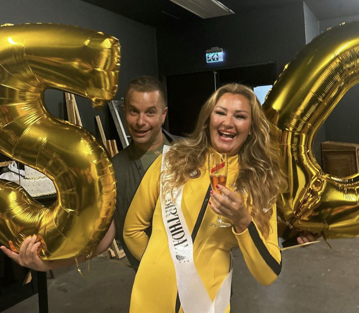Bana sürpriz yapılıp pasta sahneye geldiği ve sonrasında da içeri girdiğim üzere balonlarım elime geldiği içim üstümü değiştiremedim. Münasebetiyle bütün fotoğraflar bu kıyafetle.” dedi.
