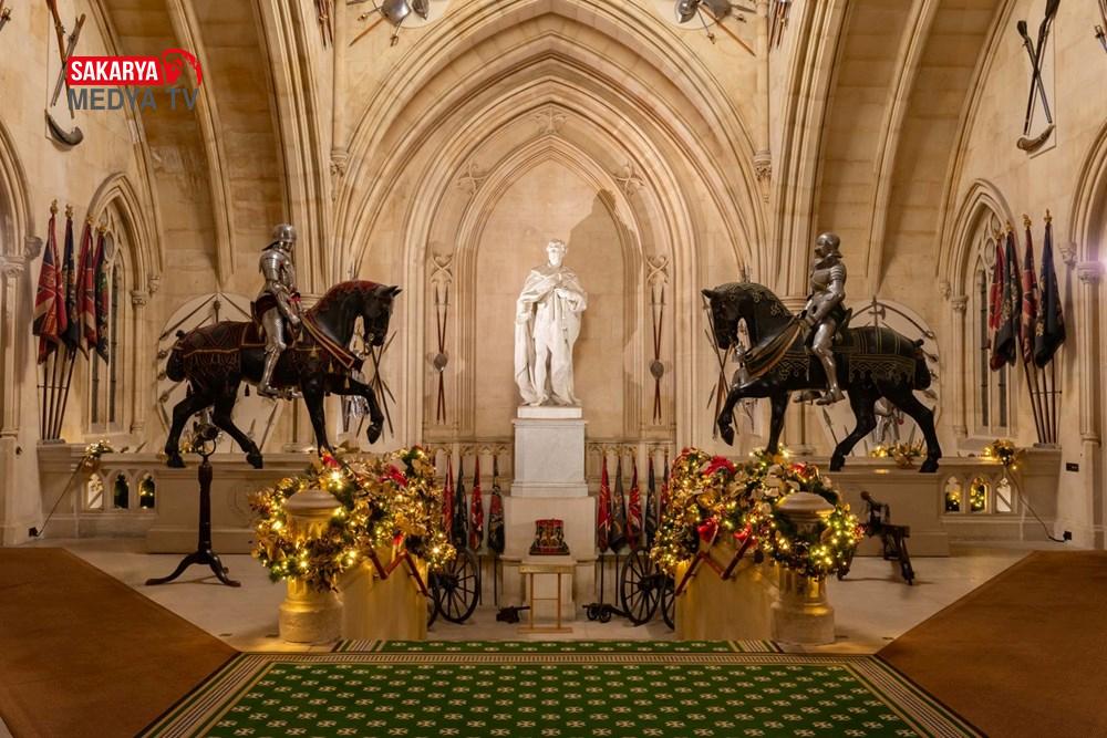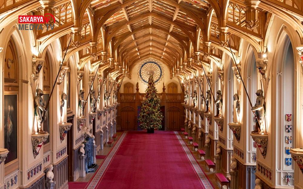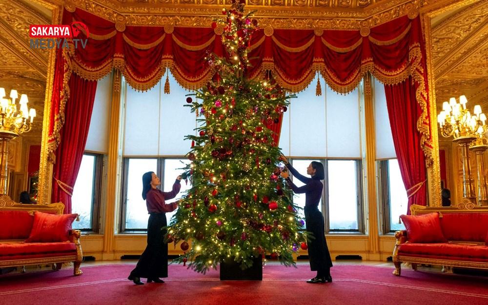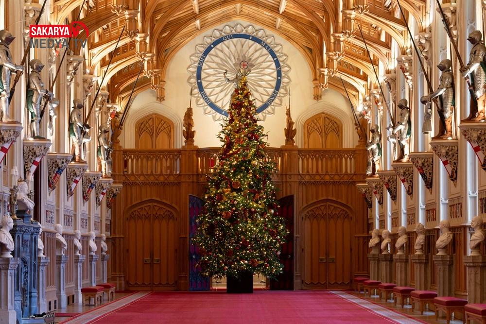 Windsor Sarayı’nın her yılki klasik yılbaşı süslemeleri, kraliyet ailesinin Noel kutlamaları için şık bir atmosfer oluşturuyor.