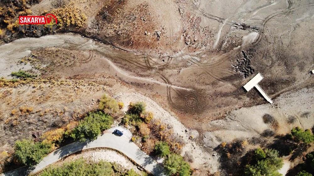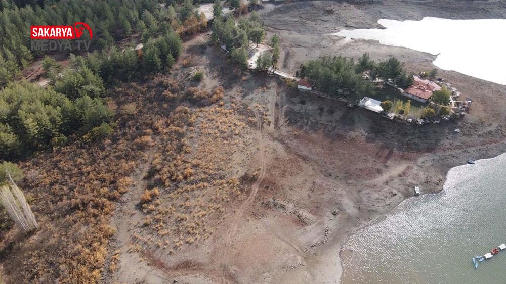 Suların çekildiği alan ve oluşan adacıklar drone ile görüntülendi.